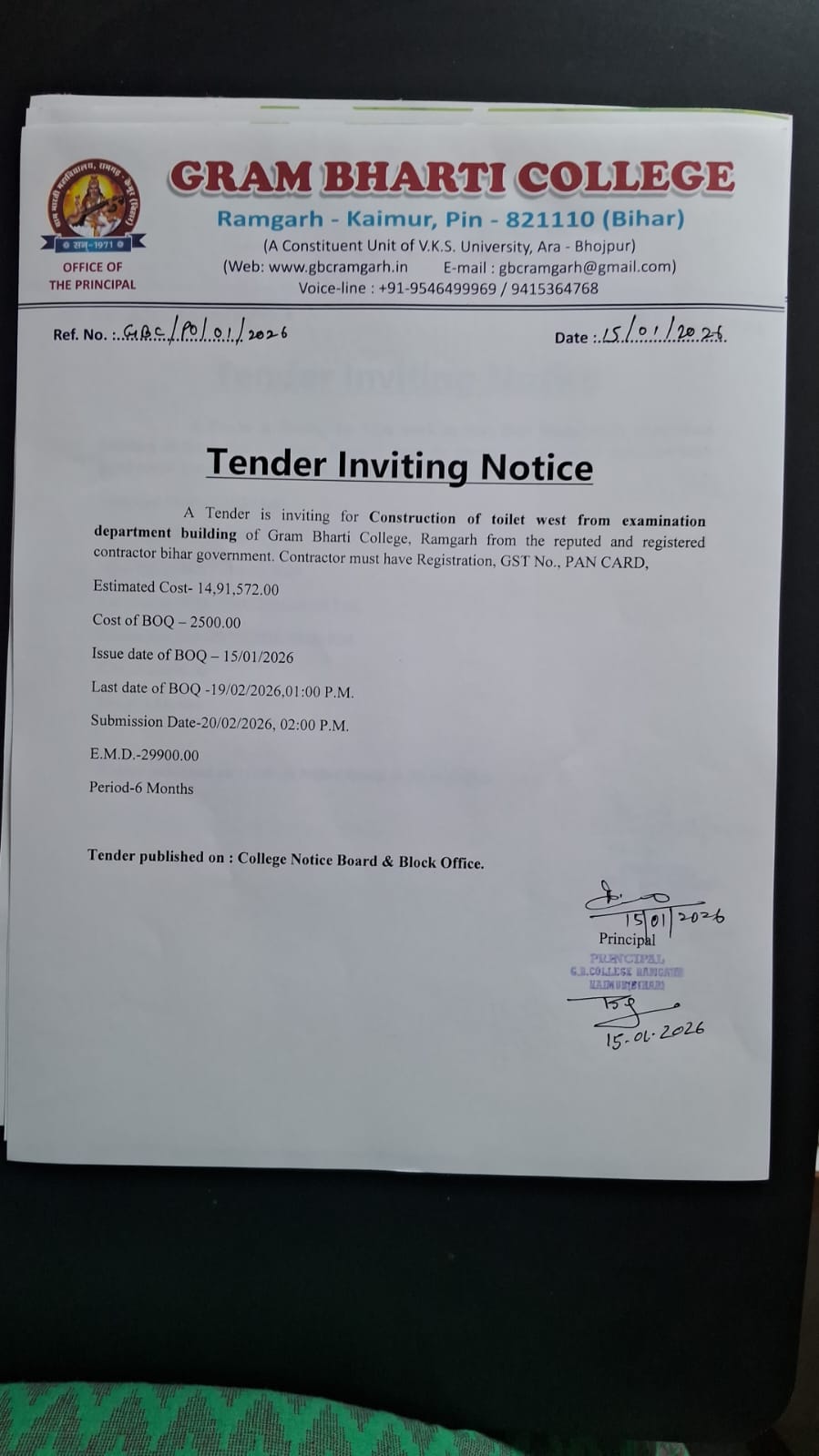 Tender Notice; Dated - 15/01/2026 |