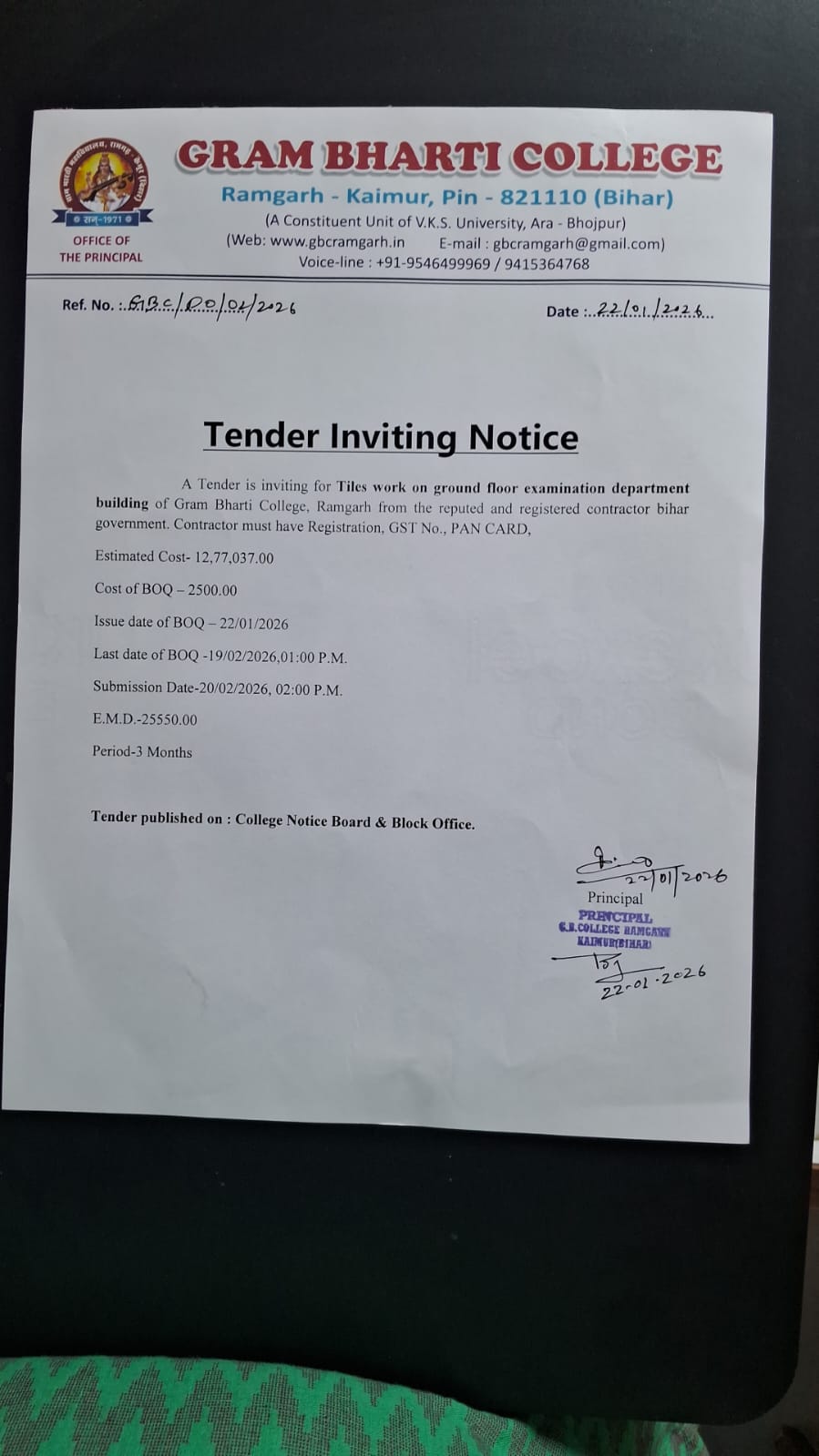 Tender Notice; Dated - 22/01/2026 |